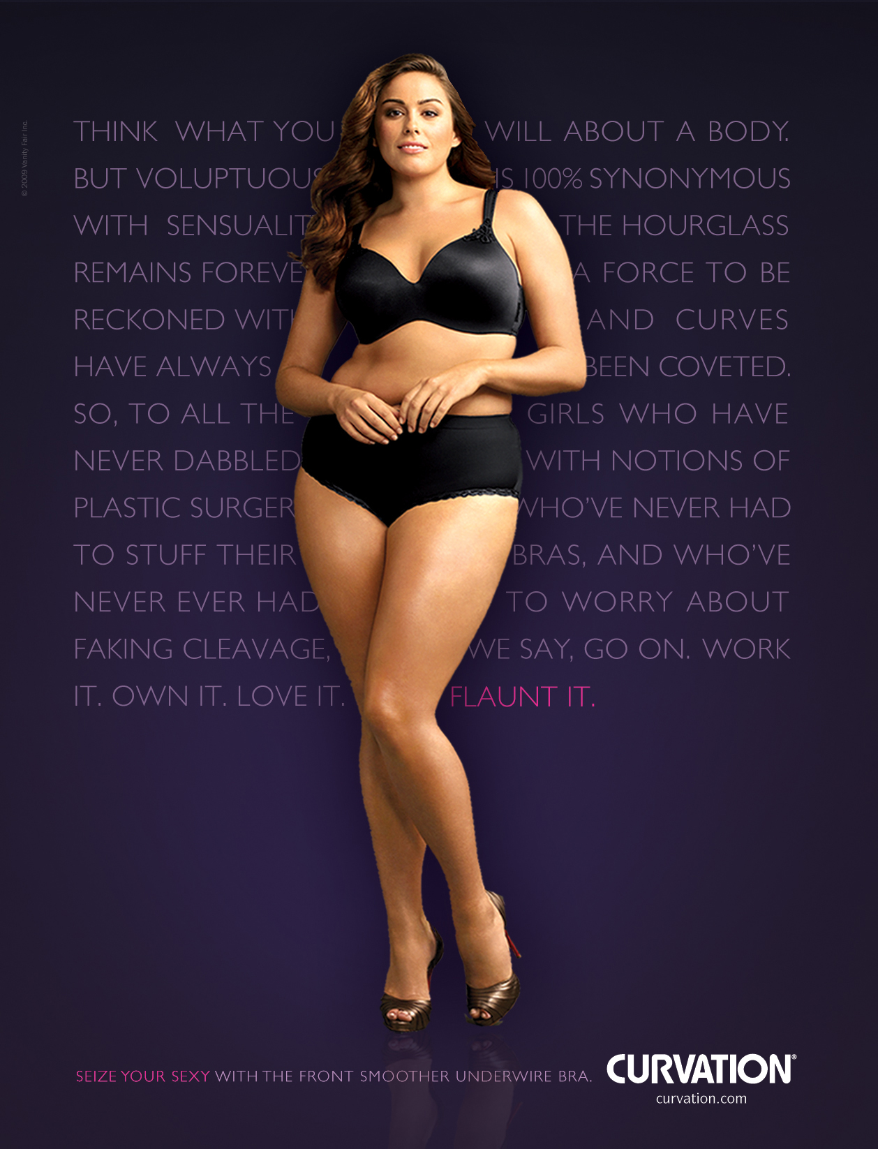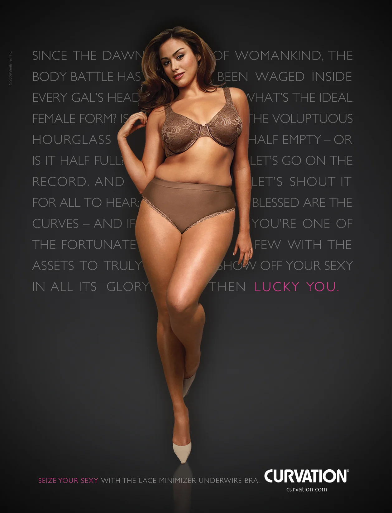 Provocative print ads make the message clear: the hour-glass is half-full. In fact, the D (and E,F,G)-cups overfloweth with gratitude.
