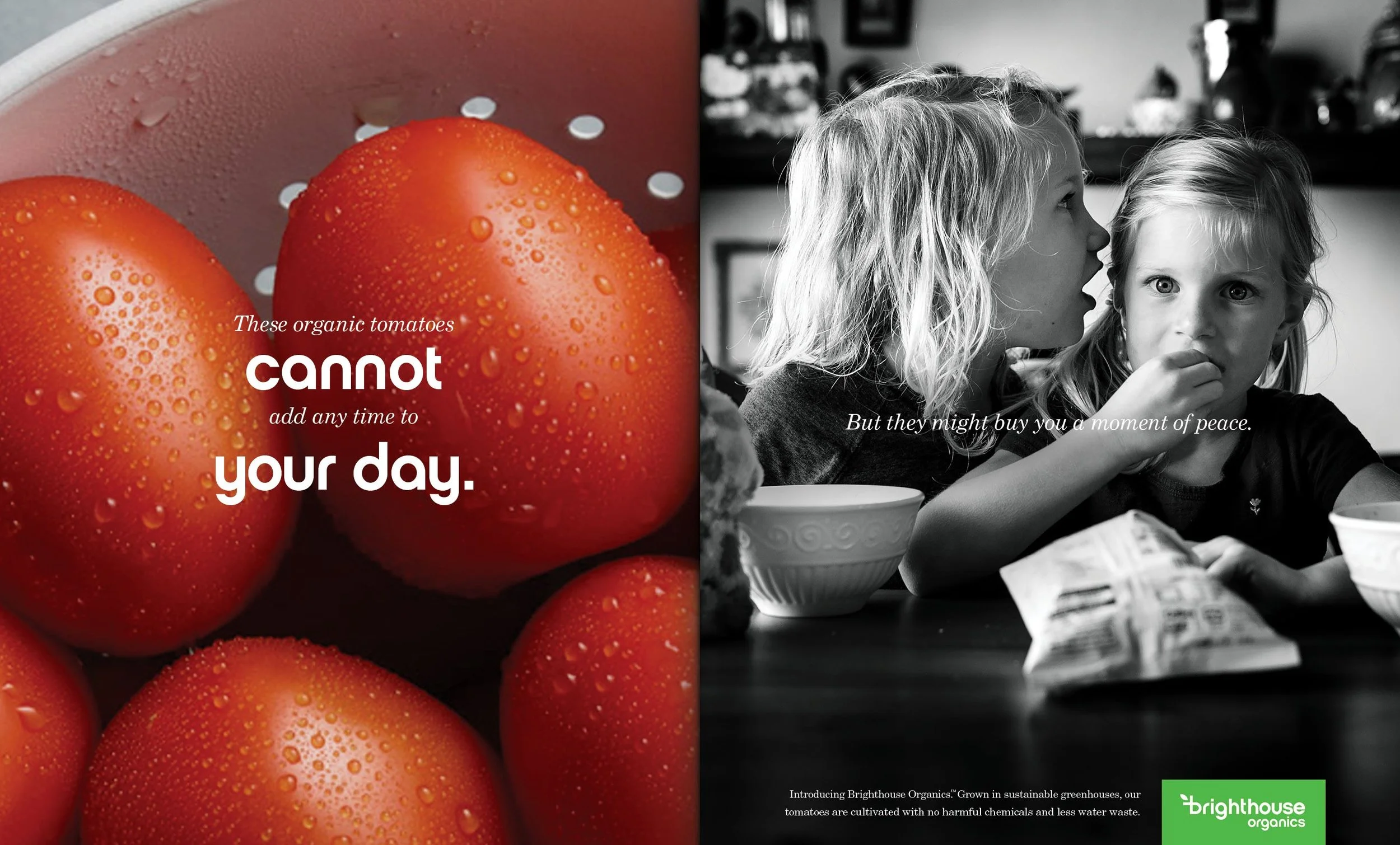 Prior to launch of all advertising materials, we conducted a rigorous identity process to invent, name, design, and package the first-ever brand of organic produce: Brighthouse Organics. A Brighter Way To Grow.