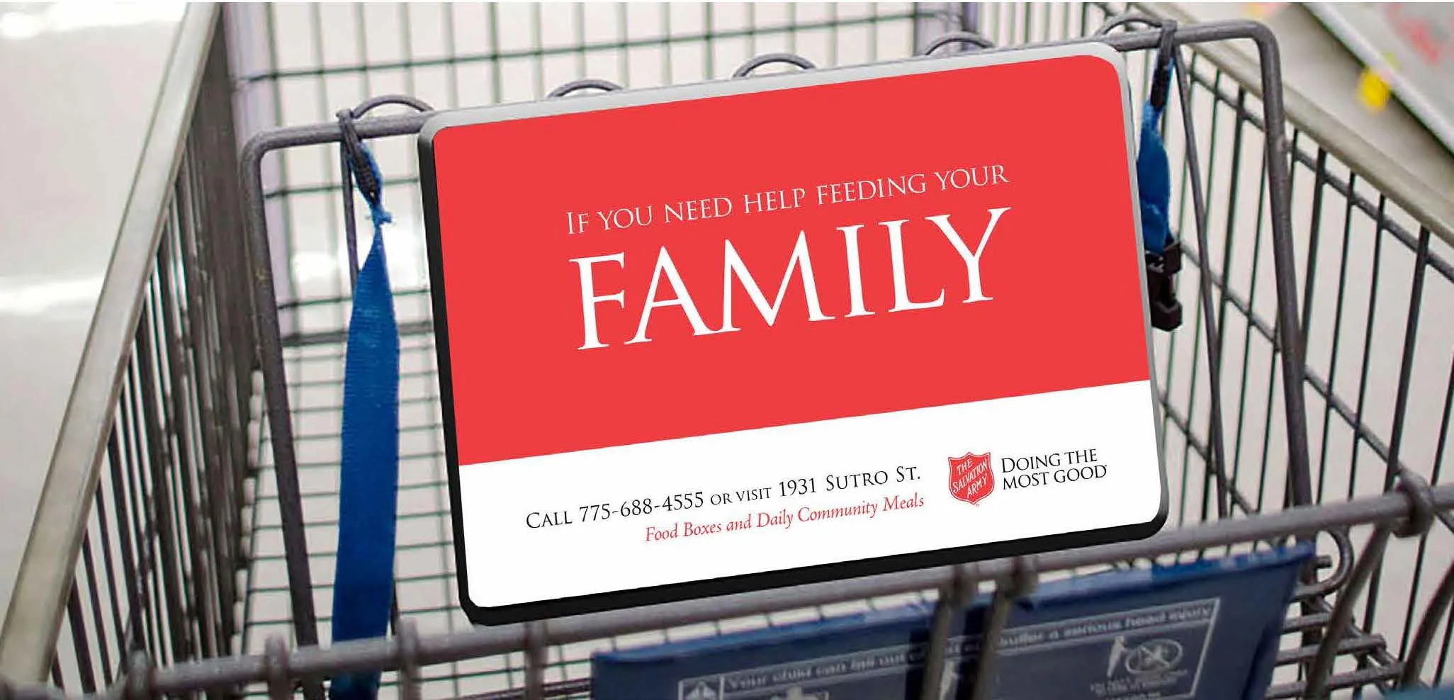 Shopping Cart Signage Many families living in poverty can only afford food OR rent. Not both.