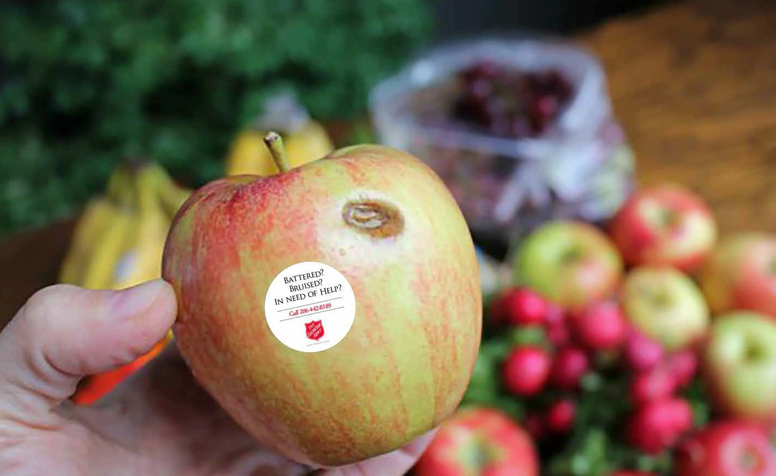 Day-Old Fruit Stickers Covert messaging in an unexpected place offered hope and help to women suffering from domestic abuse.